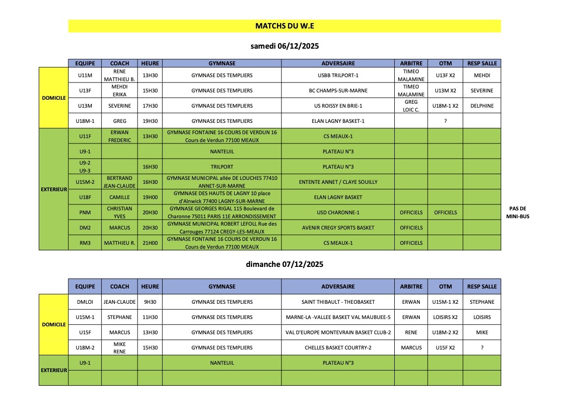 Planning saison 2025-2026