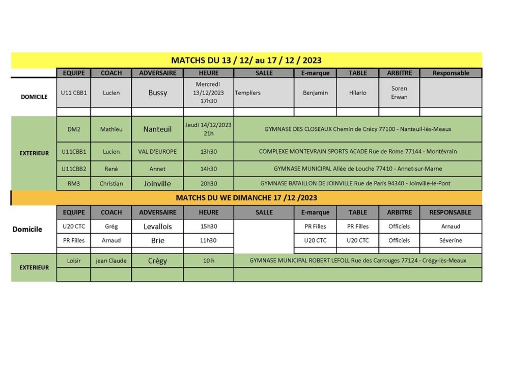 Planning du 26 décembre 2023 au 7 janvier 2024