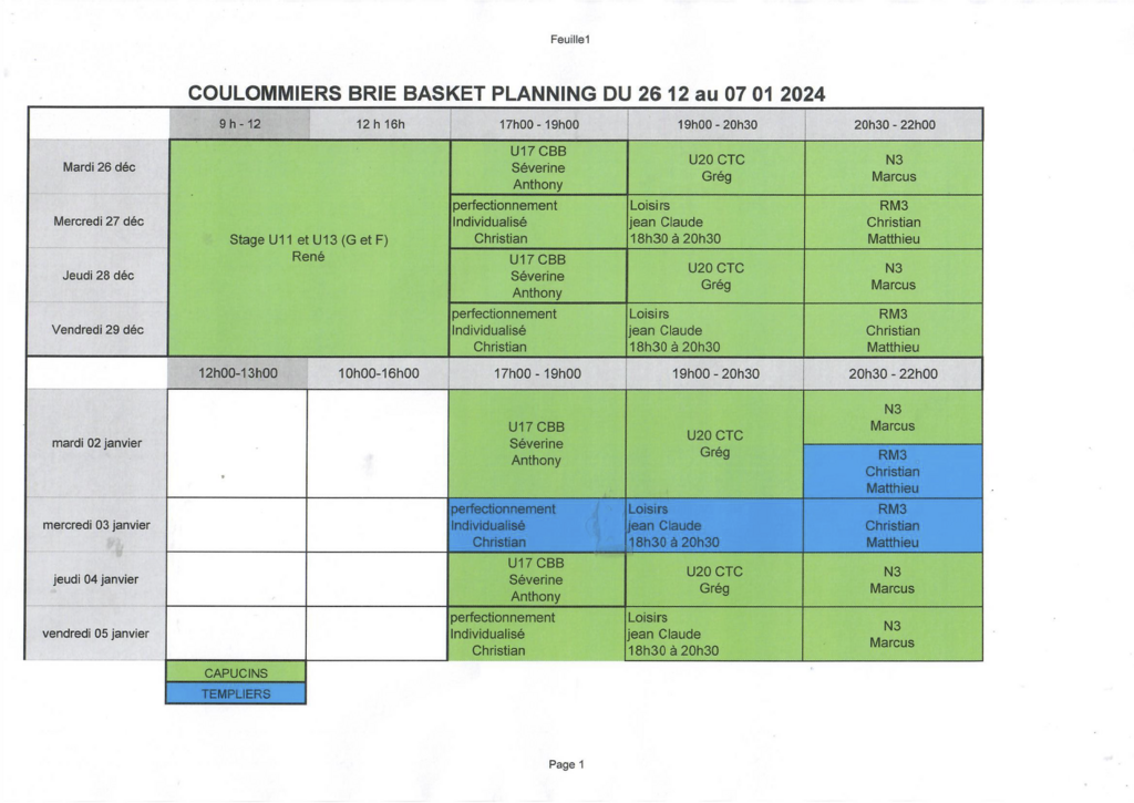 Planning du 26 décembre 2023 au 7 janvier 2024
