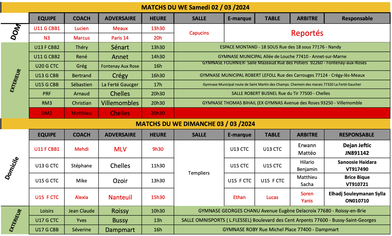 Match du Week-End du 02 et 03 mars