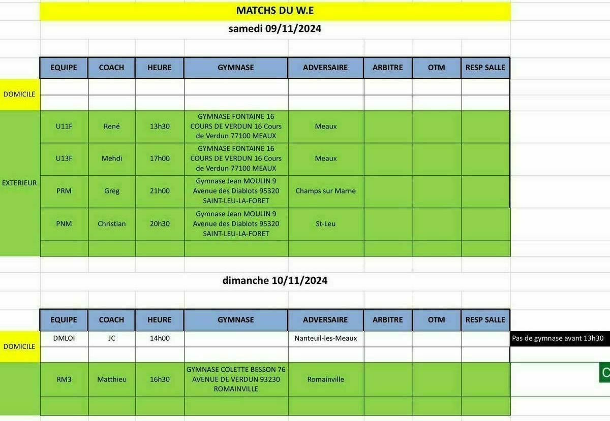 Match du Week-End du 09 et 10 novembre