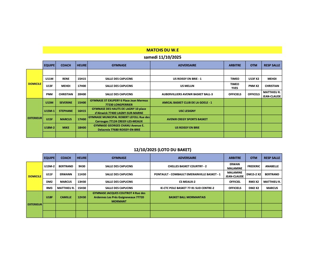 Match du Week-End 11 et 12 octobre